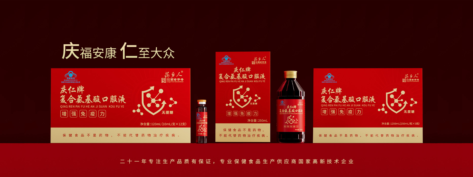 江西樟樹市慶仁保健品有限公司成立于2004年1月18號,注冊資金2600萬元,是一家專業(yè)致力于保健食品和營養(yǎng)食品研發(fā)、生產(chǎn)、銷售為一體的現(xiàn)代企業(yè)。公司現(xiàn)有保健品批文:藥鄉(xiāng)人牌黃芪當歸阿膠口服液。慶仁牌蛋白質(zhì)粉,慶仁牌鈣鐵氨基酸口服液、慶仁牌牦牛骨茯苓山藥核桃維D顆粒、阿膠枸杞顆粒、復合氨基酸、西洋參淫羊霍酒、慶仁牌鹿茸人參酒、慶仁牌鈣維生素D咀嚼片、慶仁牌葡萄糖酸鋅口服液、葡萄糖鈣口服液、硒口服液,硒片等自有批文二十二個,正在申報的保健品批文十六個,同時擁有普通食品生產(chǎn)線、固體飲料其他飲料、配置酒、壓片糖、消殺劑生產(chǎn)線。我們的專業(yè)品質(zhì)保證...
